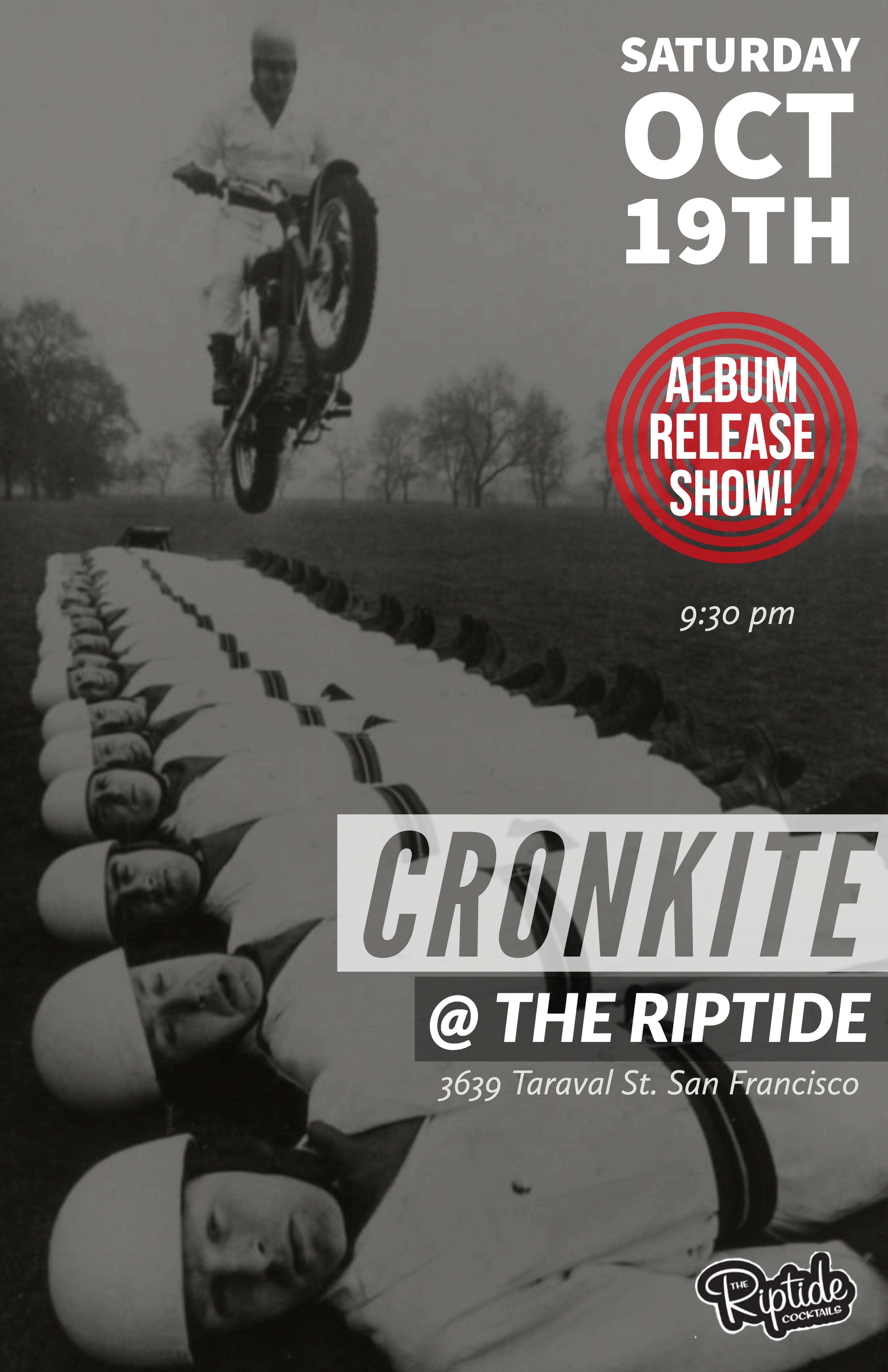 Cronkite is back at the Riptide on Saturday, October 19th! Come help us celebrate the release of our new album, "Safe Underground".